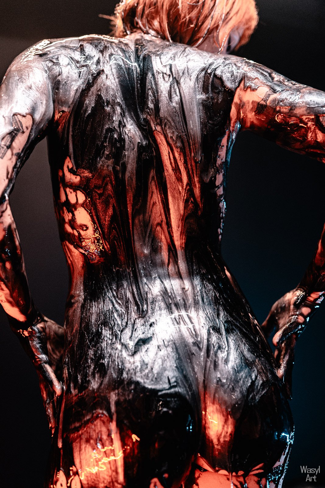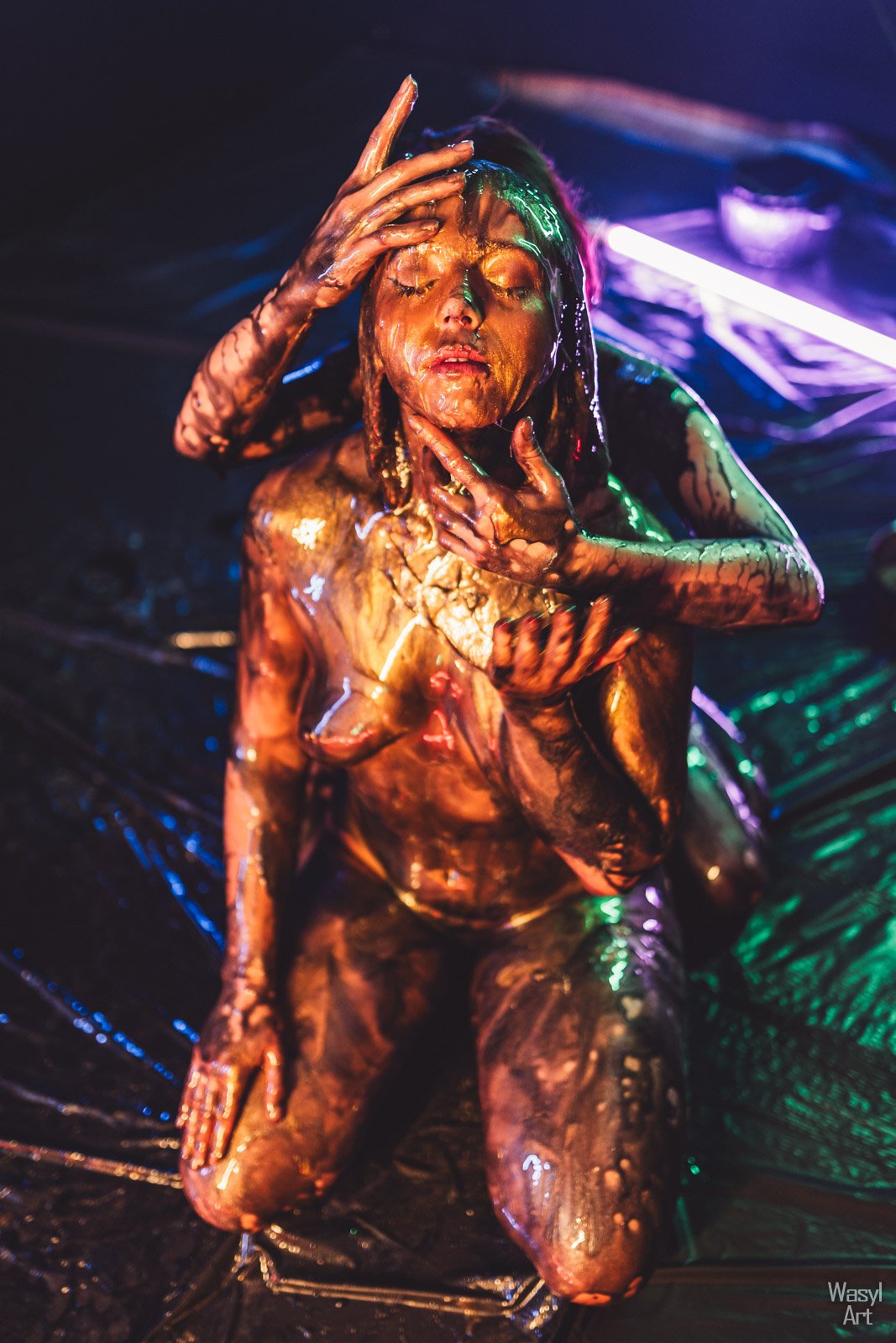 Moja droga z tym materiałem to seria metamorfoz: od surowej czystości sztucznego miodu, przez błysk brokatu i mrok czarnego barwnika, aż po ten moment… moment, w którym stał się upłynnioną perłą. Mieni się, płynie i lśni jak gwiazdy. To jest Molten Pearl. Zobaczcie przedsmak tego, co wykluło się z tych poszukiwań. Zapraszam do bookowania pokazu na waszym wydarzeniu!
